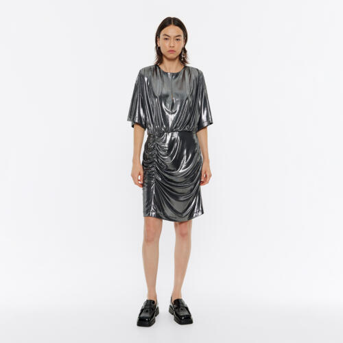 Plus Lace Top Wrap Front Mesh Midi Dress