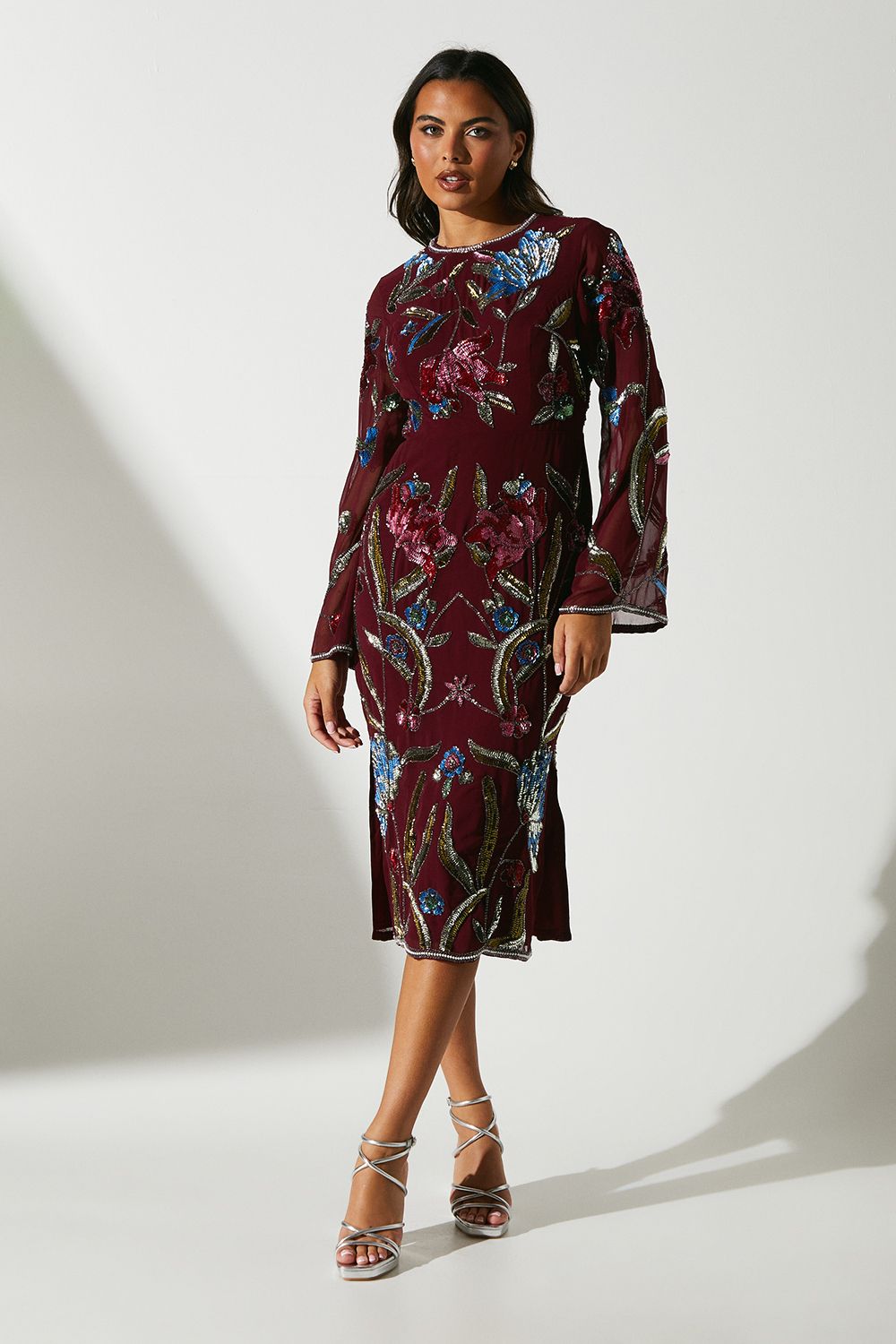 Save 45% Womens Petite Blurred Floral Chiffon Ruffle Neck Long Sleeve Midi Dress Dorothy Perkins £45.00 £24.75