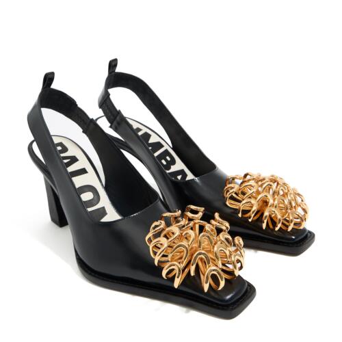BIMBA Y LOLA Black leather slingback court shoe with flower Bimba Y Lola £395.00 -