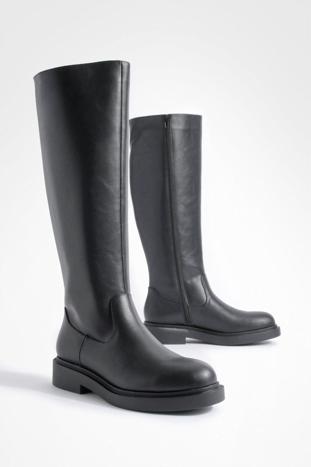 Womens Fold Over Buckle Detail Pointed Knee High Boots