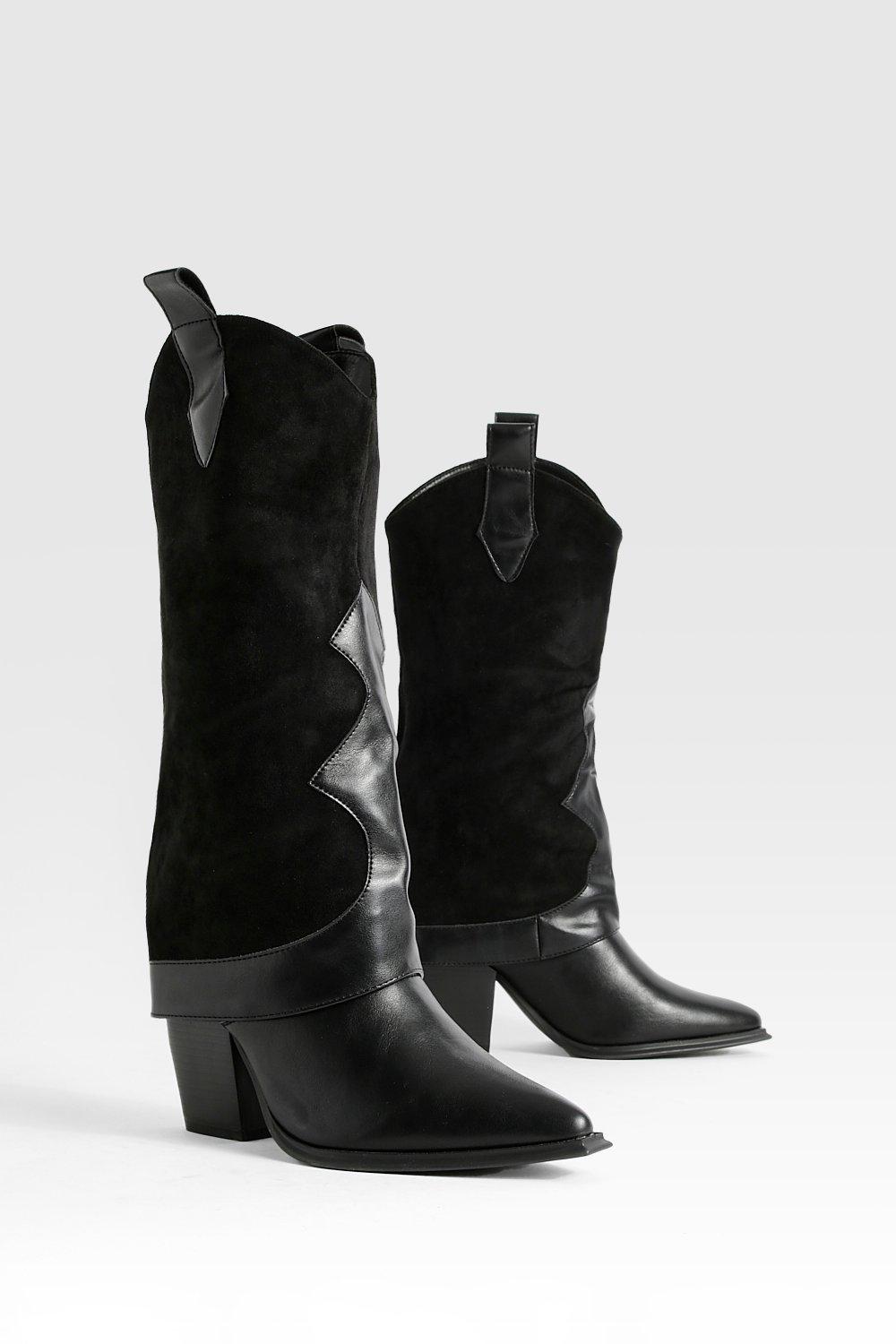 Womens Wide Fit Curved Front Pointed Toe Metallic Cowboy Boots