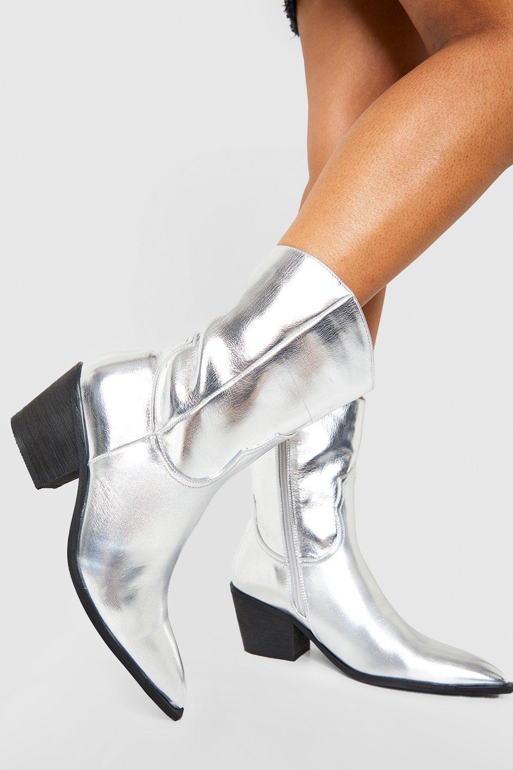 Womens Wide Fit Metallic Western Ankle Cowboy Boots BoohooSave 20%£28.00