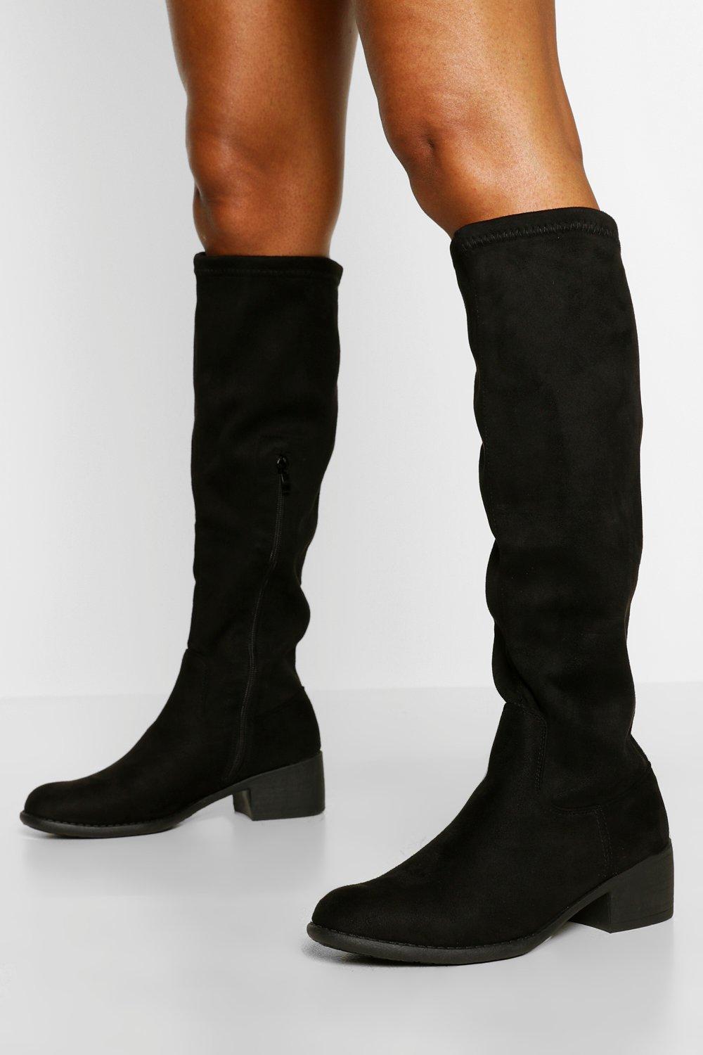 Womens Wide Fit Flat Stretch Over The Knee Boots BoohooSave 55%£17.00
