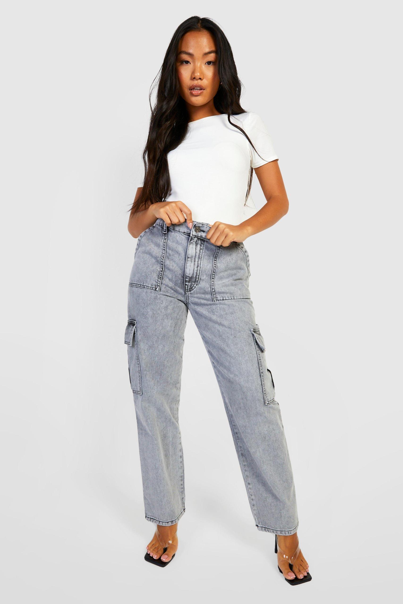 Womens Petite Acid Wash Loose Cargo Jeans BoohooSave 25%£24.00