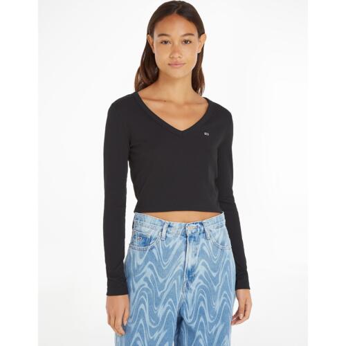 Cotton Crop Top with V-Neck and Long Sleeves Tommy Jeans £32.00 -