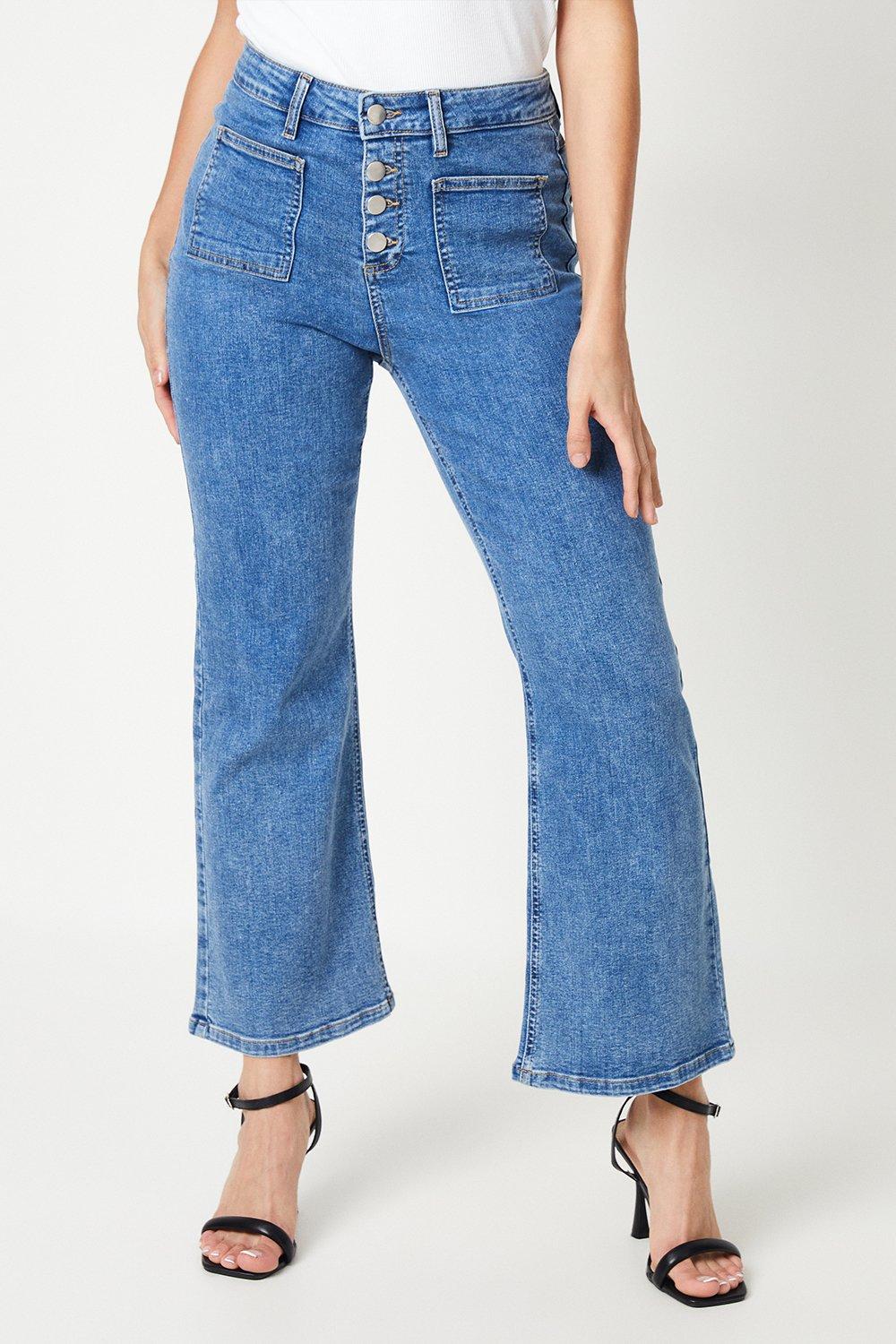 Womens Petite High Rise Button Detail Patch Pocket Flare Jeans Dorothy PerkinsSave 30%£27.30