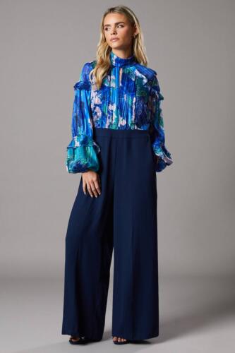 Petite Printed Chiffon Mix Fabric Jumpsuit