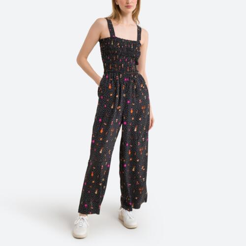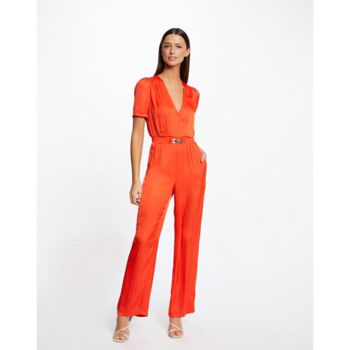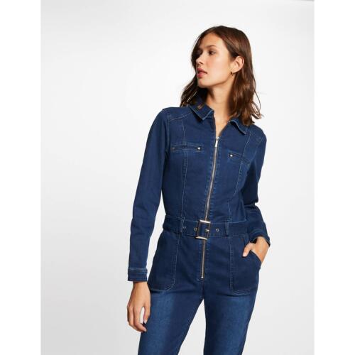Womens Puff Sleeve Button Front Denim Jumpsuit