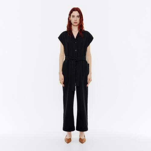 Satin Detail Wrap Bodice Tuxedo Jumpsuit
