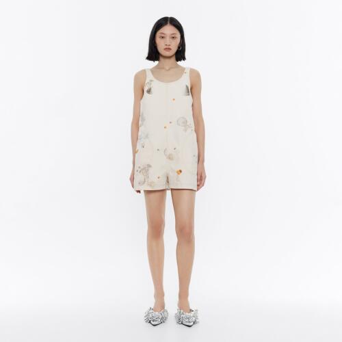 Tie Back Scallop Edge Embellished Bridal Playsuit
