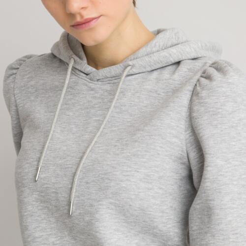 Cotton Mix Hoodie with Puff Sleeves La Redoute Collections  -