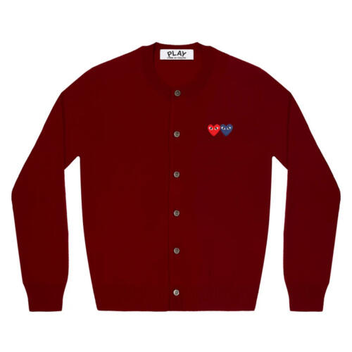 COMME des GARÇONS Comme Des Garçons Play Double Heart Cardigan Burgundy Comme Des Garcons £235.00 -