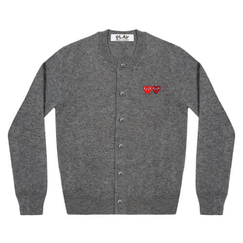 Comme Des Garçons Play Double Heart Logo Cardigan Medium Grey COMME des GARÇONS Play £235.00 -