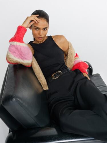 Monroe Stripe Long Sleeve V Neck Cardigan Sand Multi Stripe French Connection £75.00 -