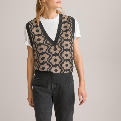 Sleeveless V-Neck Jumper in Floral Jacquard La Redoute Collections £42.00 -