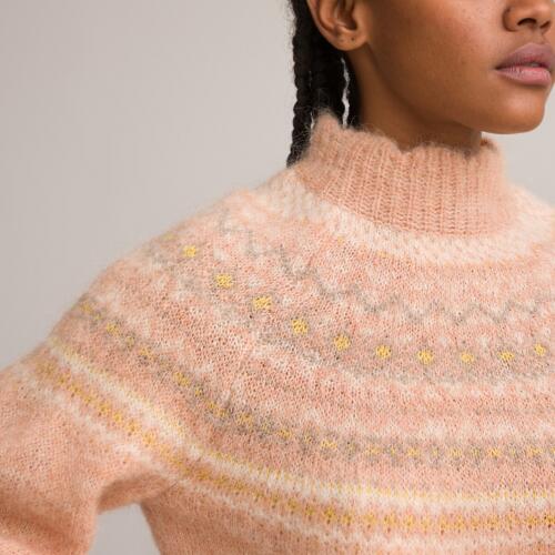 Alpaca Mix Jacquard Jumper with High Neck La Redoute Collections -