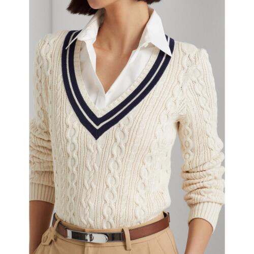 Cable Knit Cricket Jumper with V-Neck in Cotton Lauren Ralph Lauren £143.20 -