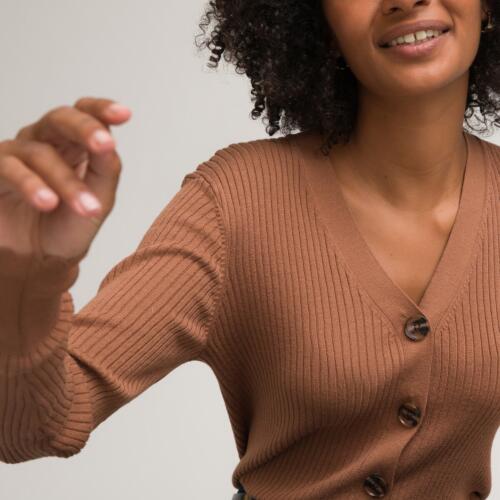 Fine Ribbed Knit Jumper with V-Neck La Redoute Collections £38.00 -