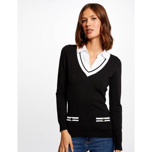 Fine Knit Jumper with Laser Cut Faux Leather Collar Naf Naf £40.00 -
