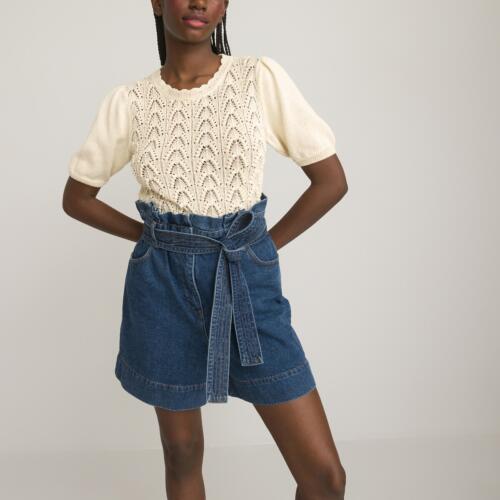 Recycled Cotton Mix Jumper in Fine Pointelle Knit with Short Sleeves La Redoute Collections £35.00 -