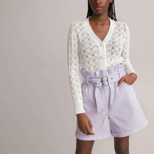 Cotton Openwork Knit Cardigan with V-Neck La Redoute Collections £42.00 -