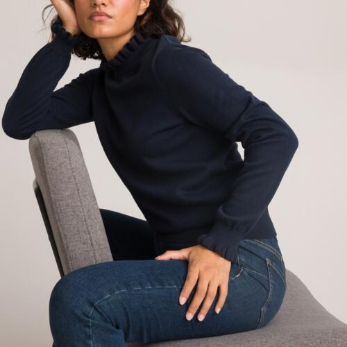 Cotton Long Sleeve Jumper with Ruffled High Neck La Redoute Collections £25.60 -