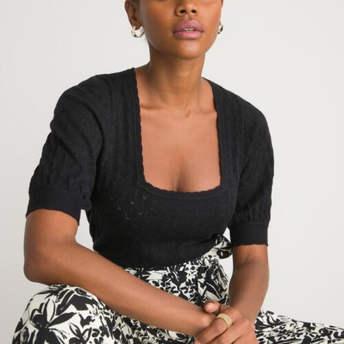 Square Neck Jumper with Short Puff Sleeves La Redoute Collections £35.20 -