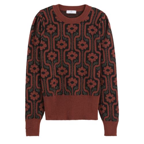Floral Jacquard Jumper with Puff Sleeves and Crew Neck La Redoute Collections £35.75 -
