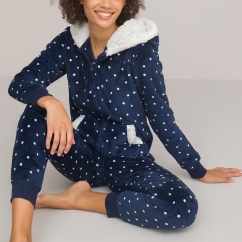 Fleece Hooded Onesie in Polka Dot Print La Redoute Collections £28.00 -