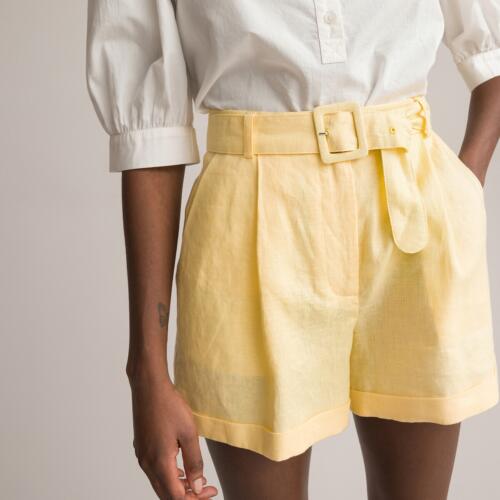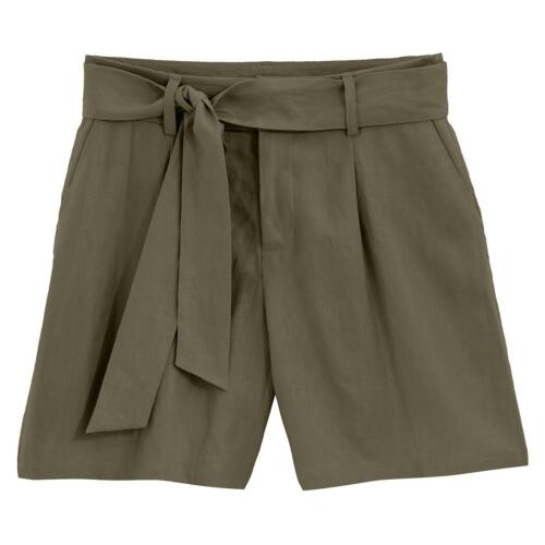 Linen Paperbag Shorts with Tie-Belt La Redoute Collections £18.90