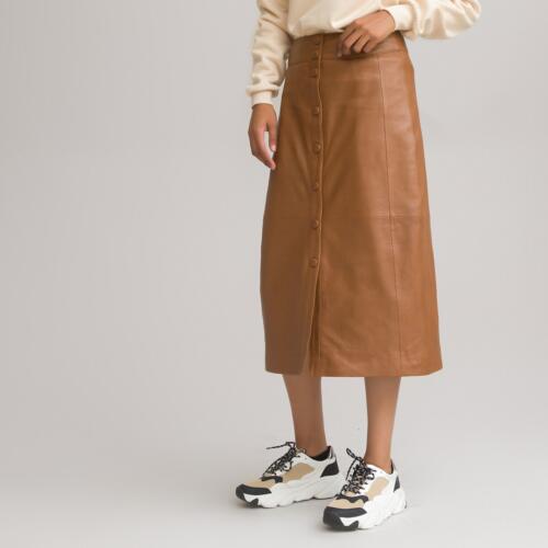 Leather Buttoned Midi Skirt La Redoute Collections £56.25 -
