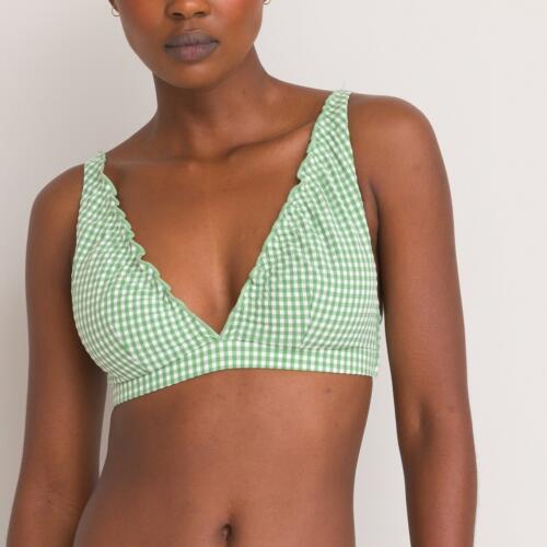 Seersucker Halterneck Bikini Top in Gingham Print La Redoute Collections £24.70 -