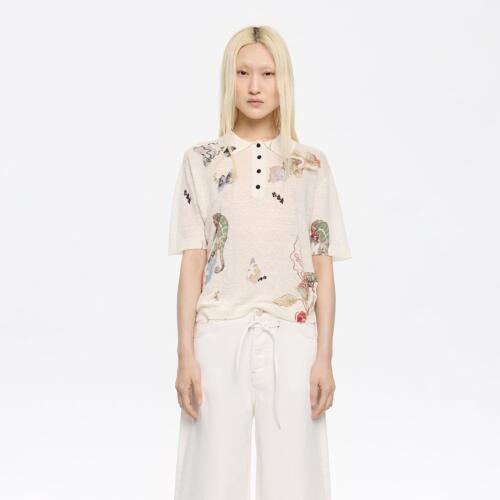 BIMBA Y LOLA Ivory Chameleon linen polo shirt collar sweater Bimba Y Lola £140.00 -