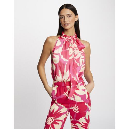 Womens Tall Red Floral Twist Neck Sleeveless Blouse