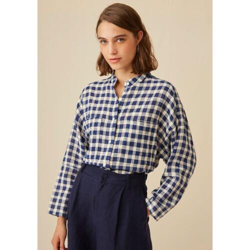 Gingham Check Cotton Blouse with Crew Neck and Long Sleeves Harris Wilson £113.00 -