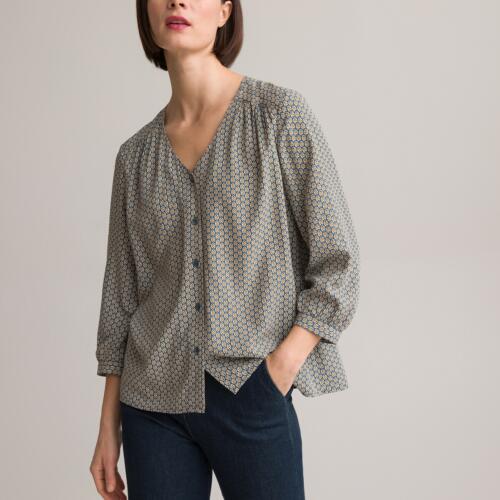 Graphic Print Blouse with V-Neck and 3/4 Length Sleeves Anne Weyburn £40.60 -