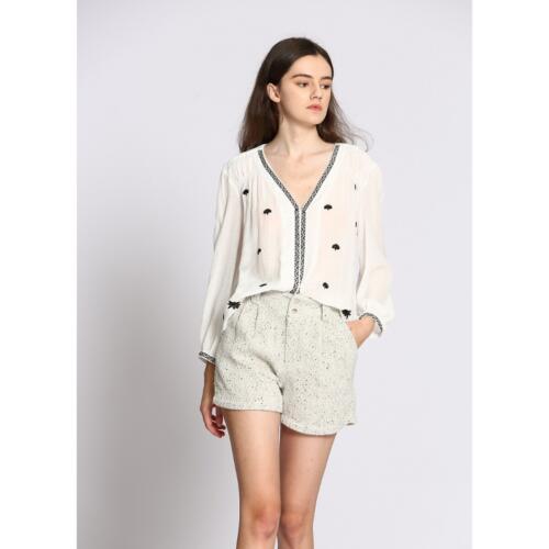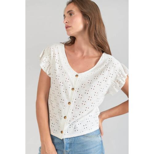 Recycled Embroidered Blouse with V-Neck and Short Sleeves Le Temps Des Cerises £33.75 -