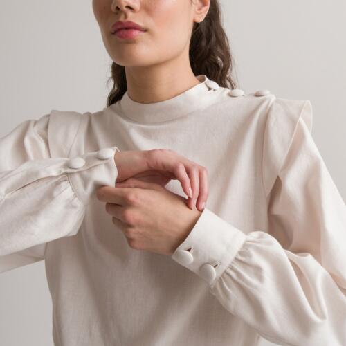 Cotton/Linen Blouse with High Neck and Long Sleeves La Redoute Collections £32.50 -