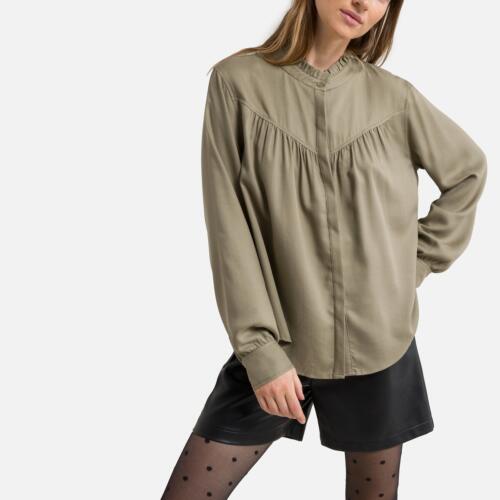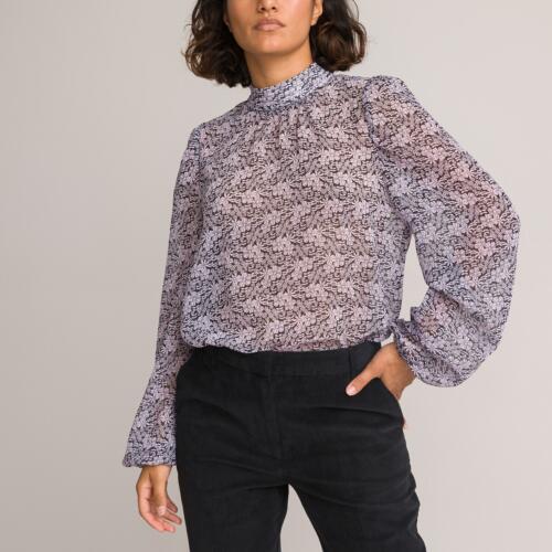 High Neck Ruffled Blouse with Long Puff Sleeves La Redoute Collections -