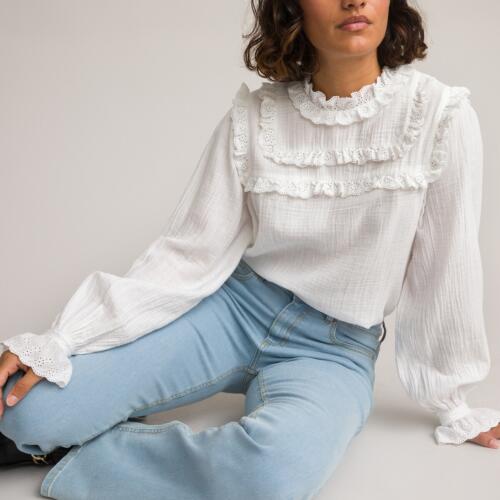 Cotton High Neck Blouse with Lace Trim La Redoute Collections £27.00 -