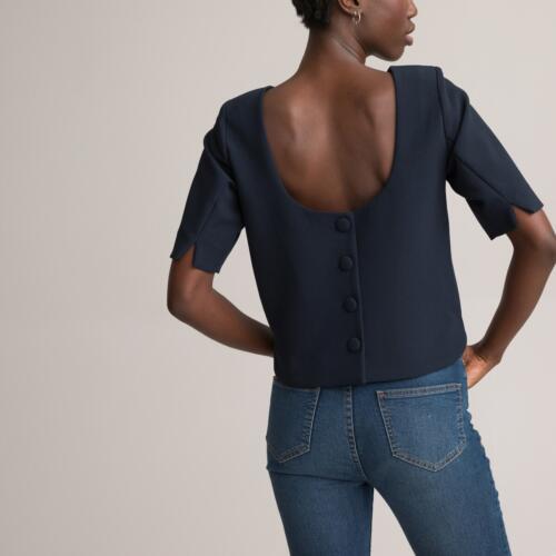 Recycled Crew Neck Blouse with Ballerina Neckline at the Back La Redoute Collections £23.10 -
