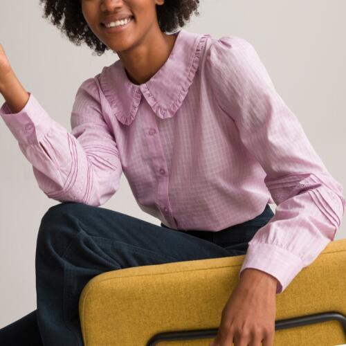 Organic Cotton Blouse with Ruffled Peter Pan Collar La Redoute Collections £29.00 -