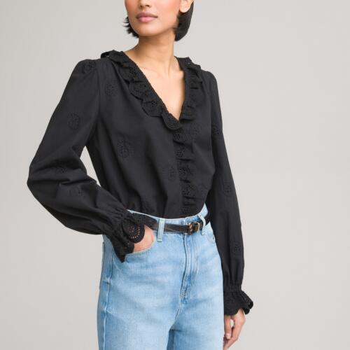 Cotton Embroidered Ruffled Blouse La Redoute Collections £26.10 -