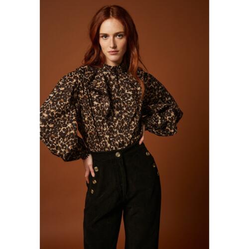 Clara Leopard Print Blouse in Cotton with Long Puff Sleeves Petite Mendigote £99.00 -