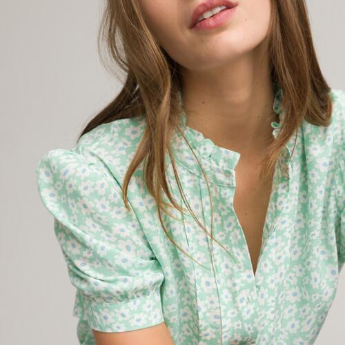 Ruffled High Neck Blouse with Short Sleeves La Redoute Collections £32.20 -