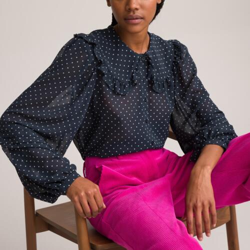 Recycled Polka Dot Blouse with Ruffled Peter Pan Collar and Puff Sleeves La Redoute Collections £54.00 -