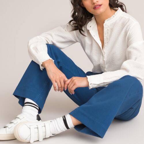Ruffled Cotton Seersucker Blouse with High Neck La Redoute Collections £32.20 -