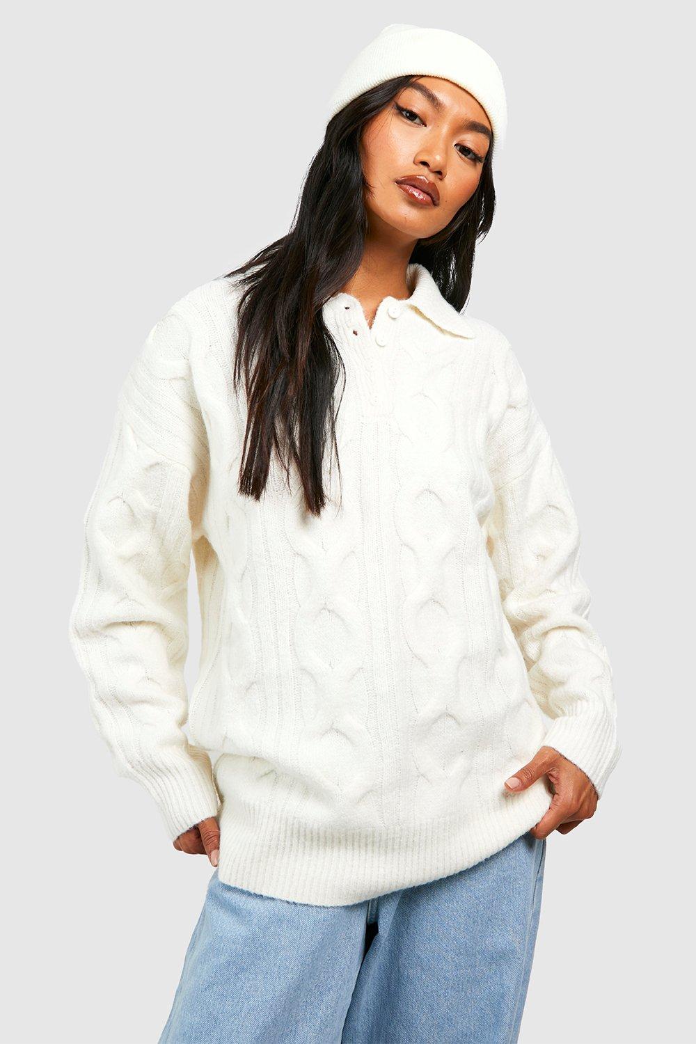 Womens Chunky Cable Knit Roll Neck Oversized Jumper