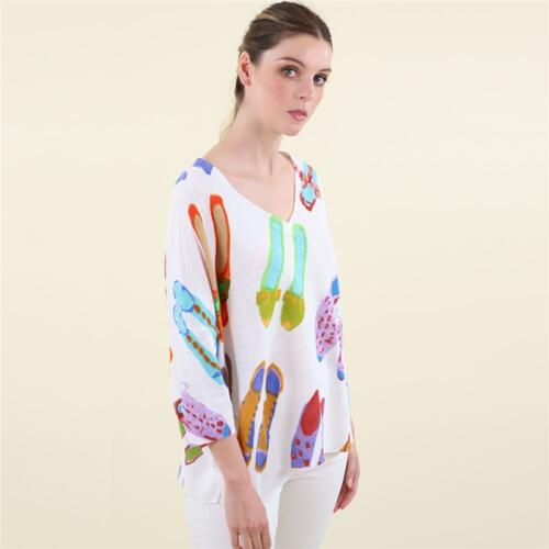 Jumper V-Neck Linen Mix Leaf Print Estheme Cashmere £119.00 -