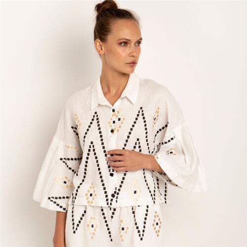 Blouse Linen Embroidered With Fluted Sleeves Kori £179.00 -